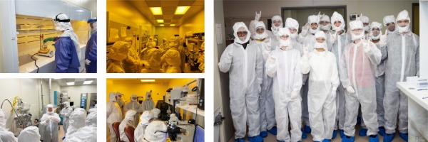 USF NRT Trainees in the clean room at USF’s Nanotechnology Research and Education Center as they expand their expertise in semiconductor manufacturing and advanced packaging. The facility is equipped with state-of-the-art semiconductor manufacturing tools and serves as the primary location for the labs, allowing students to engage directly with the advanced technologies used in the microelectronics industry. (Photo courtesy of USF NRT Research Training Program.)